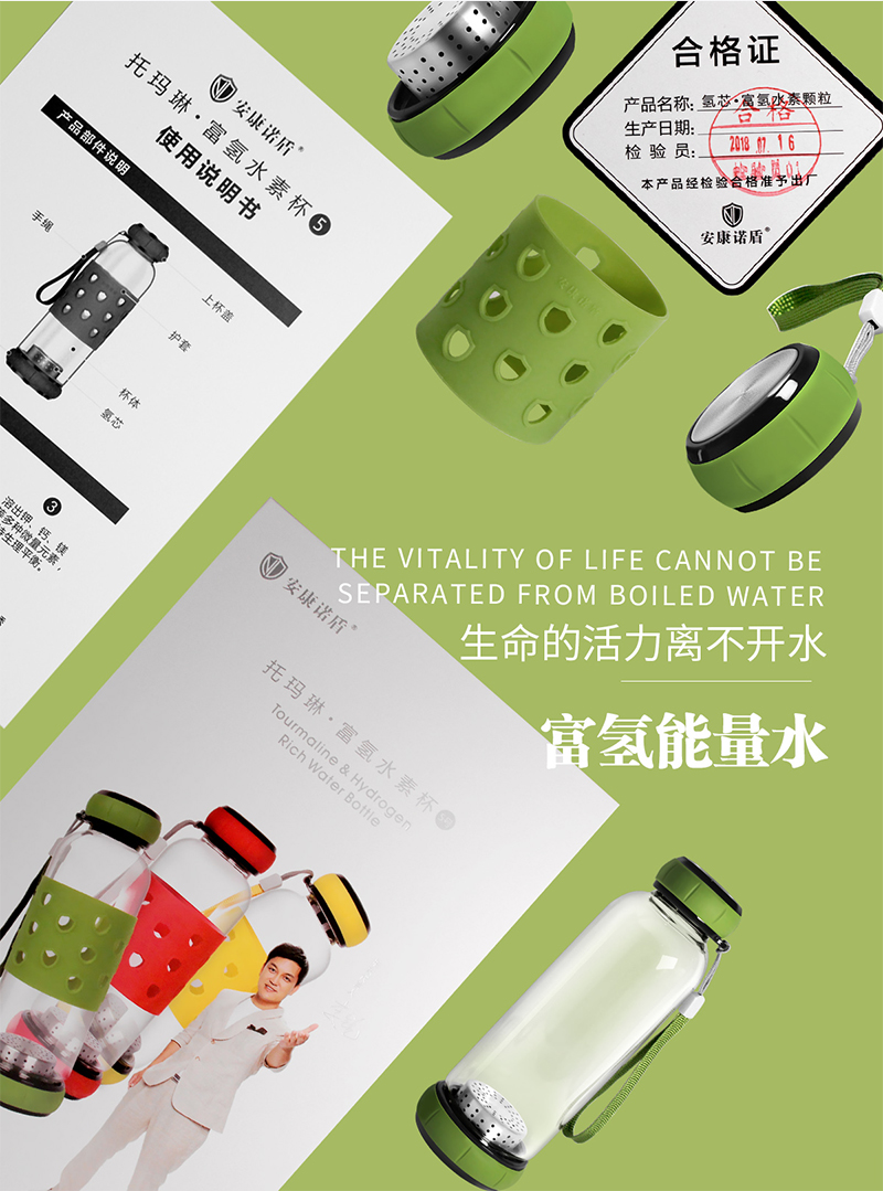 產品名稱 | 安康諾盾托瑪琳富氫水素杯 | 產品顏色 | 中國紅、檸檬黃、活力綠 |